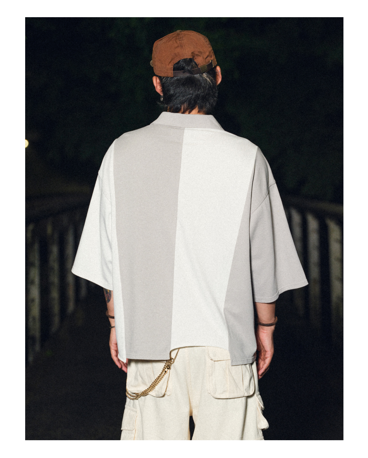 Make your choice and redefine your style with the Graphic Print Color-Block Zip Polo. This shirt challenges classic design with its bold, spliced construction and dramatic, street-inspired graphics.