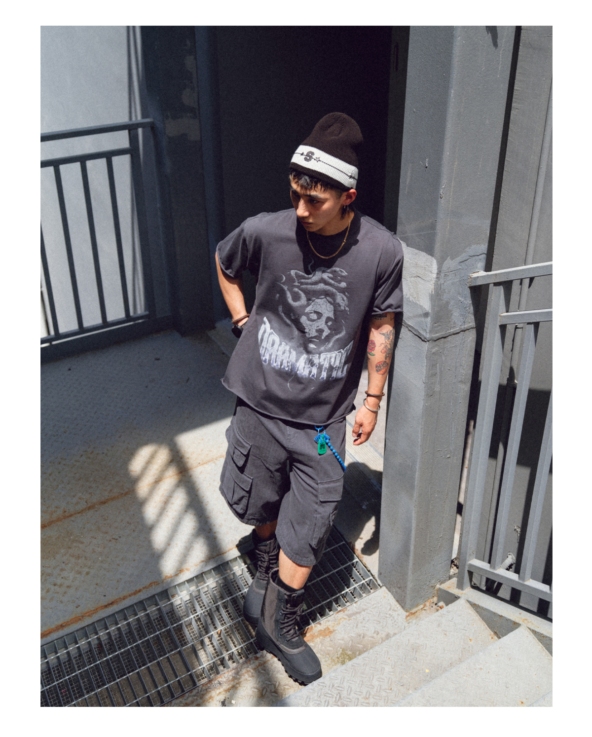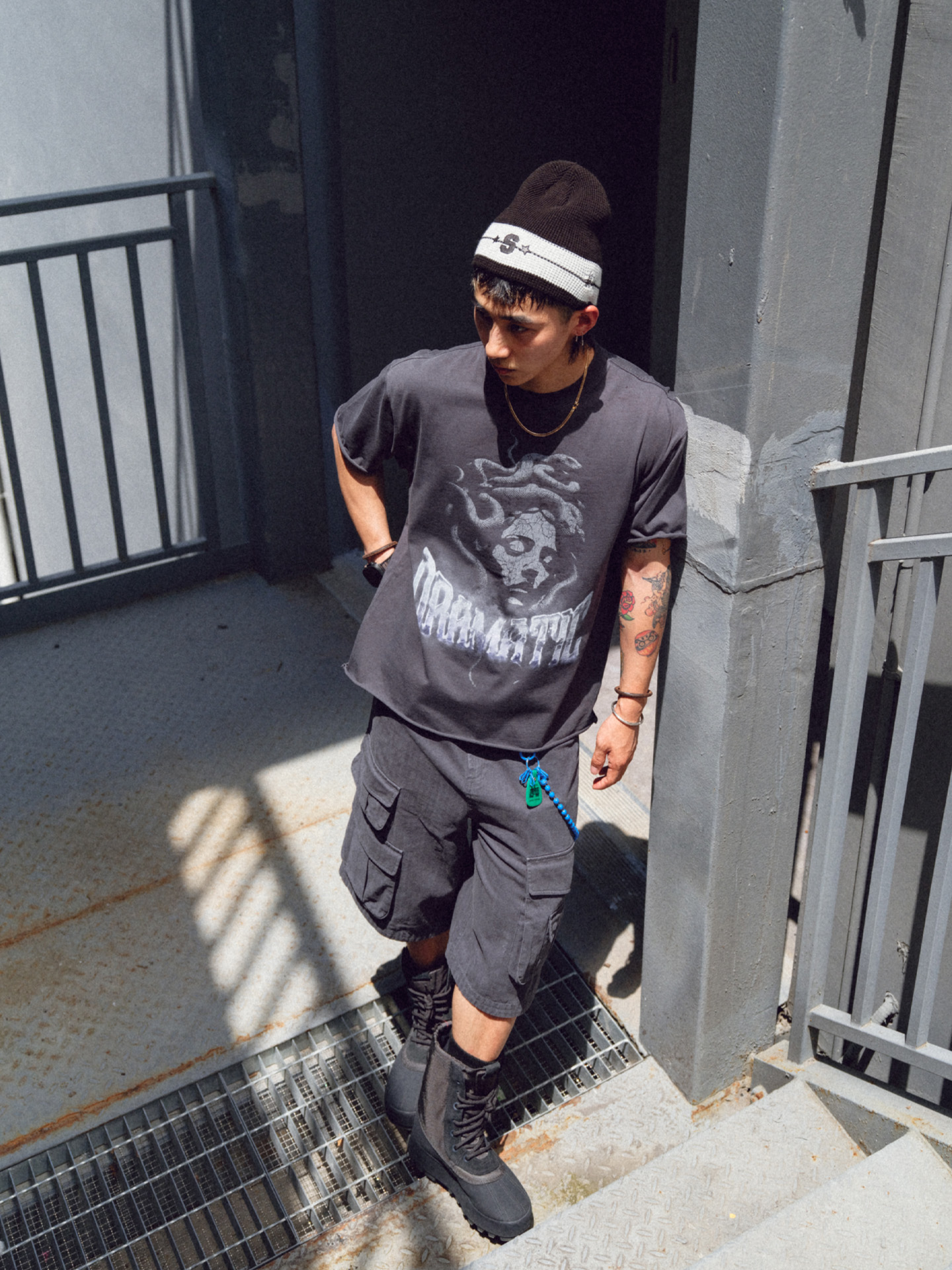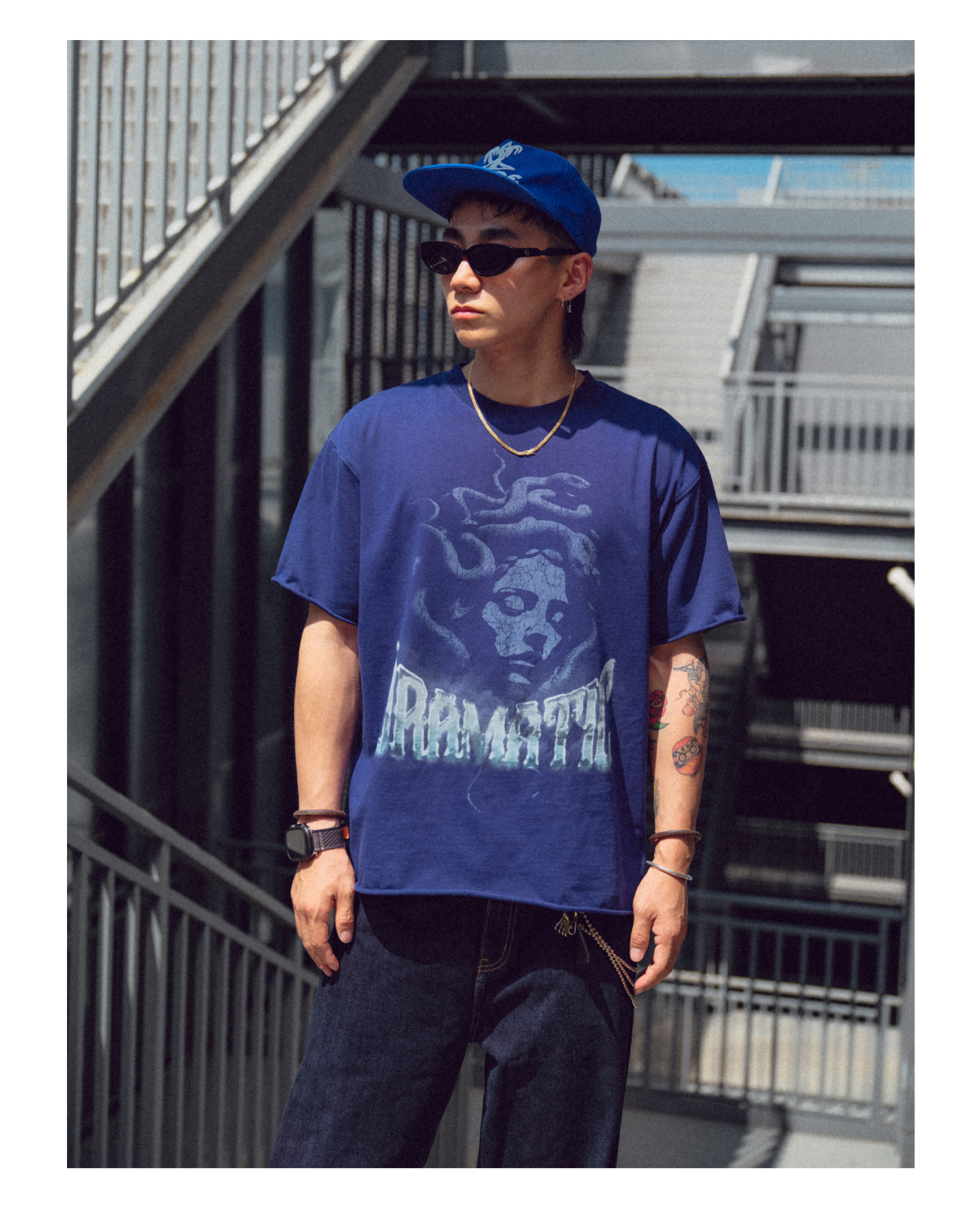 • Mythological Graphic: Features a large, faded Medusa print on the front for a powerful, artistic statement.