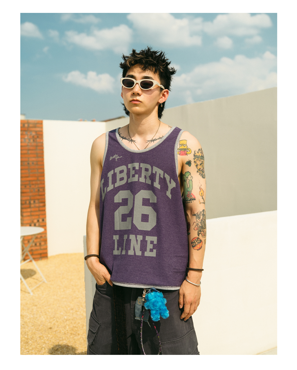 Made from 100% cotton , this jersey is lightweight and soft to the touch, ensuring breathability and comfort during any activity. The sleeveless design and relaxed, loose fit provide maximum freedom of movement. Finished with classic color-block trim around the neckline and armholes, this tank top combines retro sportswear vibes with modern streetwear versatility.