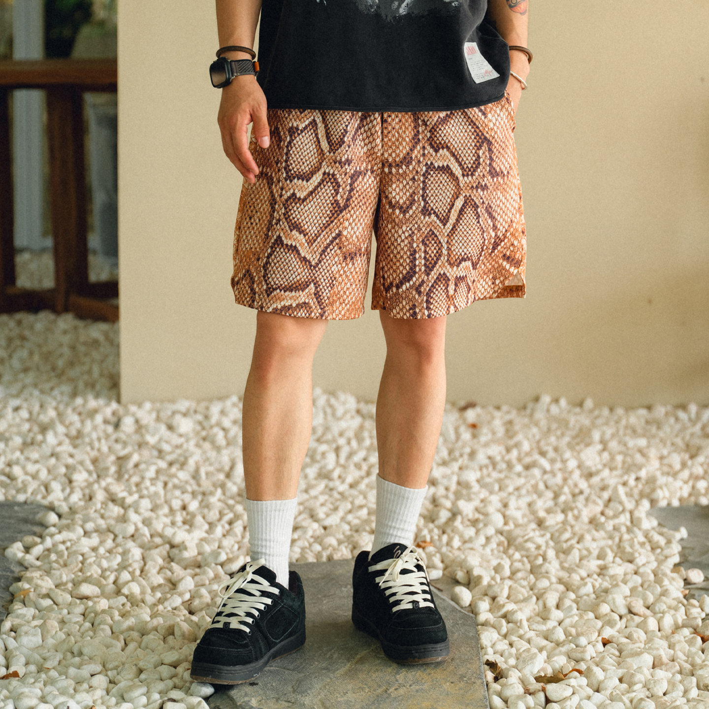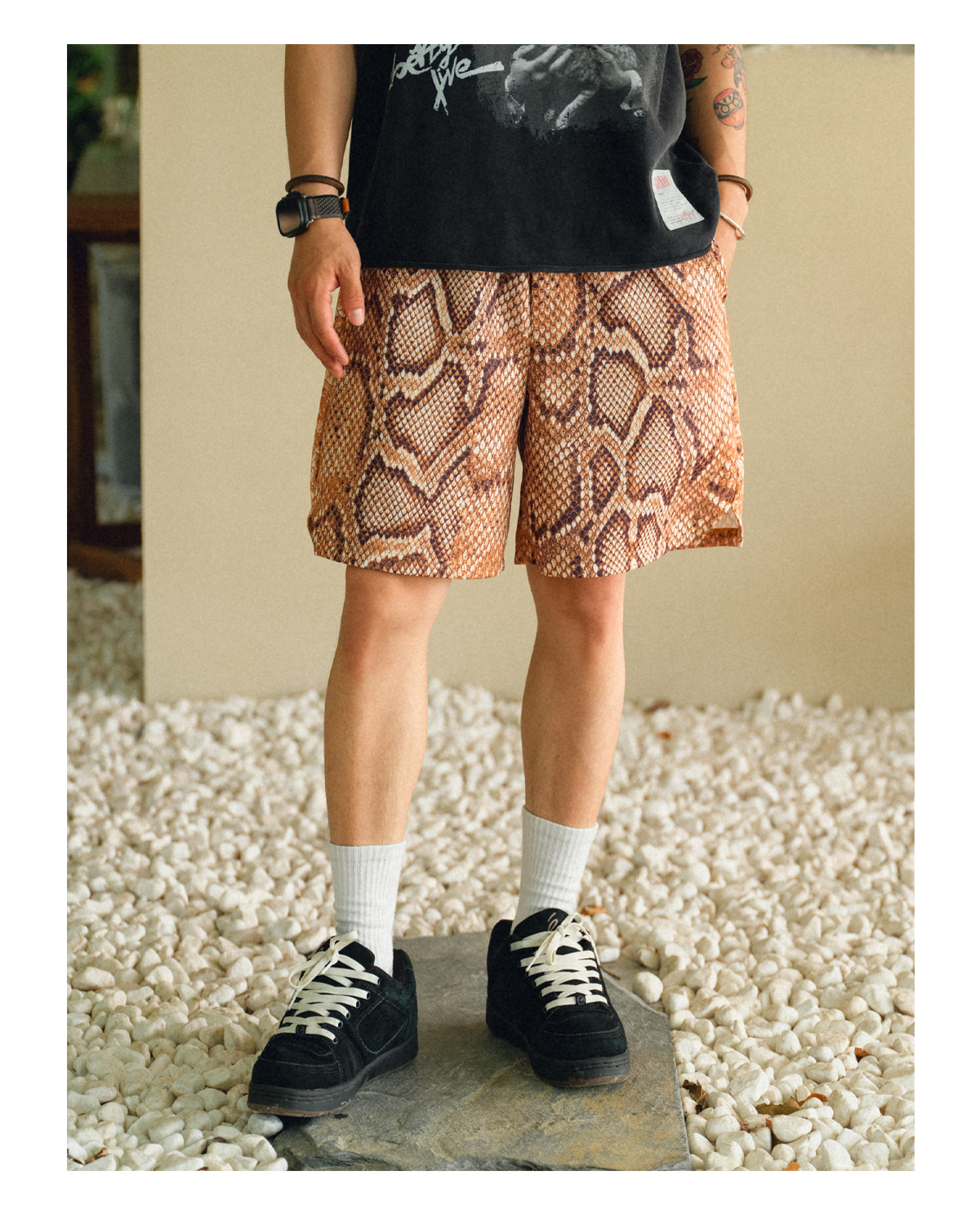 • Bold Snakeskin Print: An all-over, high-contrast snakeskin pattern for a standout look.