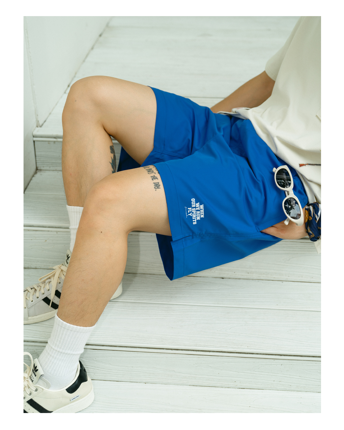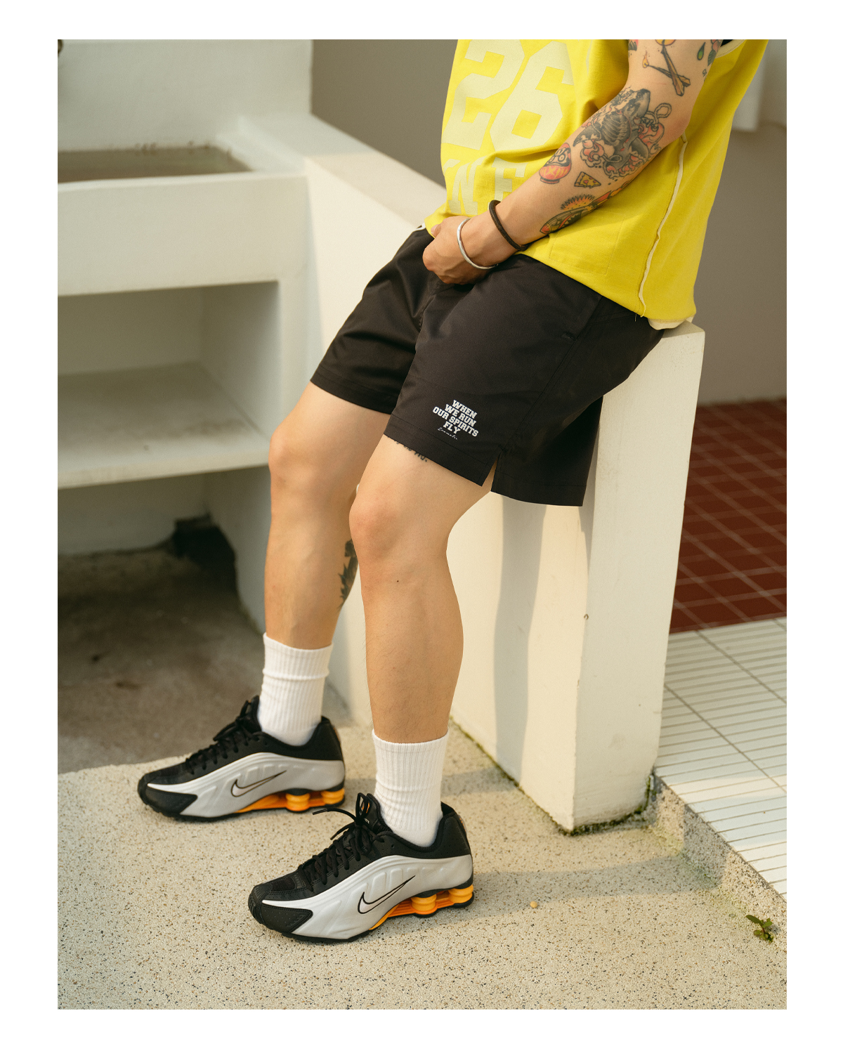 • Inspirational Graphics: Features the phrase "WHEN WE RUN OUR SPIRITS FLY" and a bold "98" graphic print.