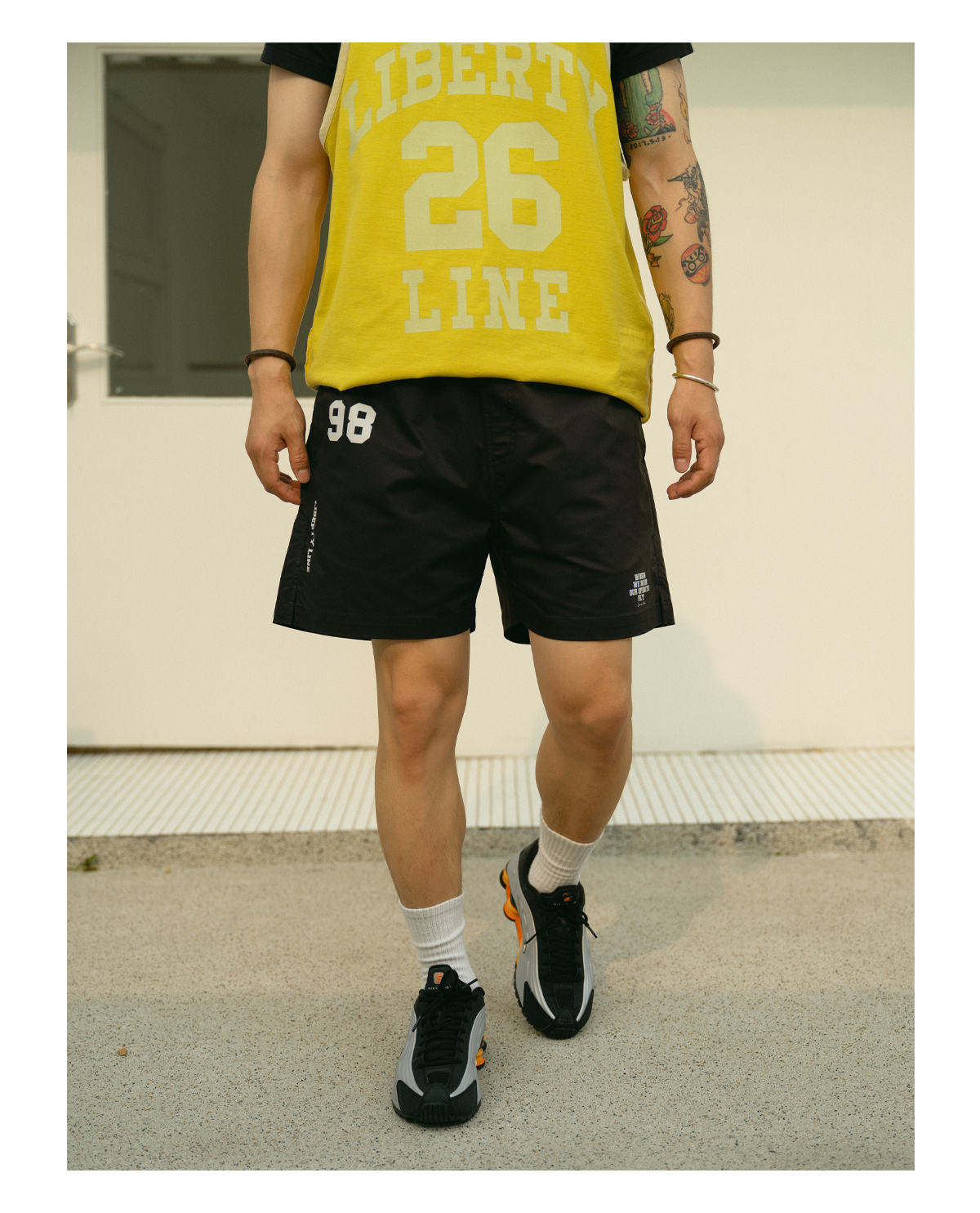 Feel your spirits fly with the “Liberty Line 98” Athletic Shorts, designed for comfort and style in motion. These shorts feature a clean, minimalist aesthetic accented with bold graphics, including a prominent “98” on the leg and the inspirational phrase “WHEN WE RUN OUR SPIRITS FLY”.