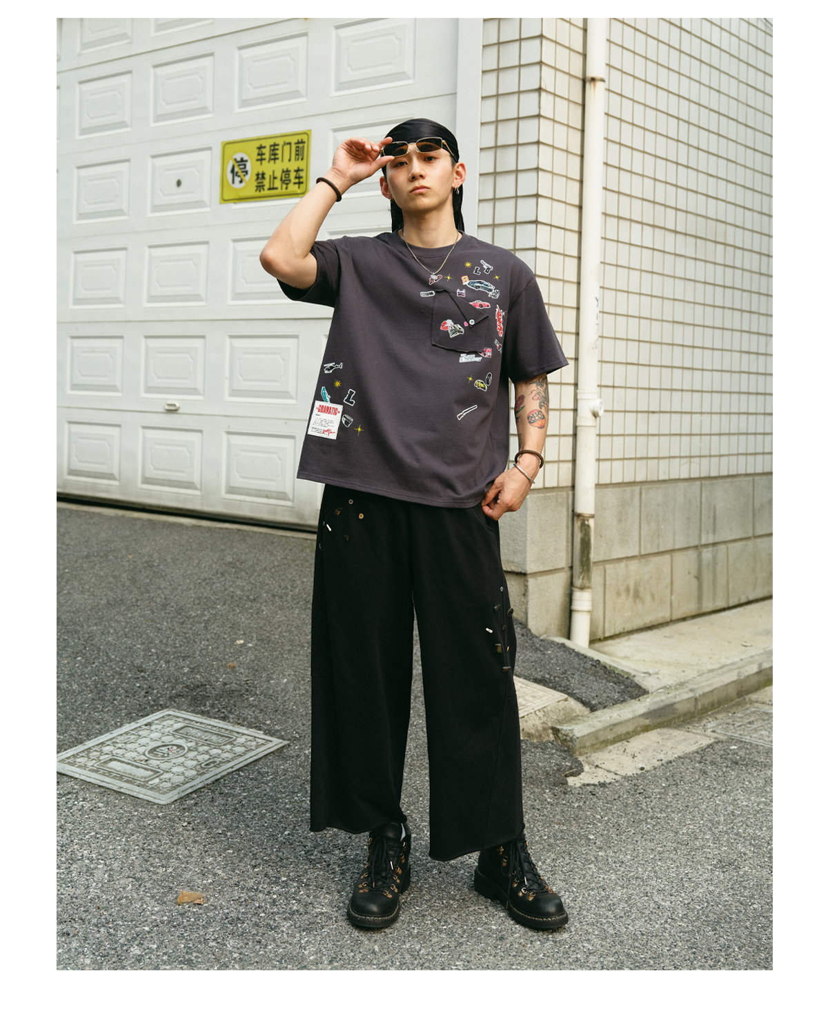 Unleash a playful and rebellious spirit with the Sticker Bomb T-Shirt. This isn’t just a tee; it’s a canvas of expression, featuring a scattered collage of sticker-style graphics including race cars, flames, handguns, and stacks of cash. The eclectic prints are playfully arranged around a functional chest pocket, creating a dynamic and edgy look.